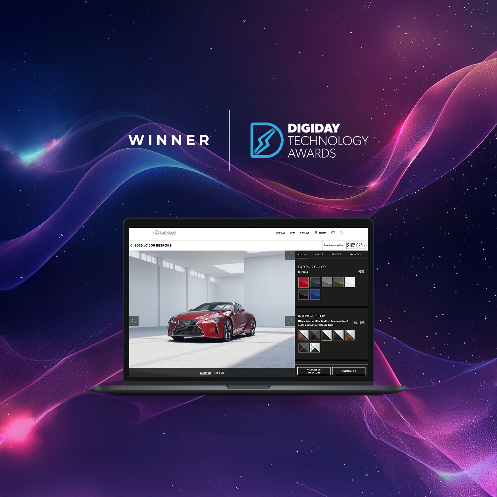 Jiayi Hu 9/15/25 Jiayi Hu 9/15/25 TEAM ONE WINS DIGIDAY TECHNOLOGY AWARD FOR ALL-NEW LEXUS BUILD TOOL Read More